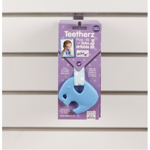Pop-itz are the new innovation from Skibz. Easily 'popped on' to Skibz Doublez dribble bibs, these handy little attachments stop babies' teethers and soothers going missing, and keep them clean and close at hand.